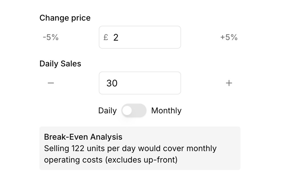 This is the type of thing that might have been done in a spreadsheet, for a specific business idea. But I liked the challenge of building a more generic web based tool - especially since it's becoming so easy and fun to do so.